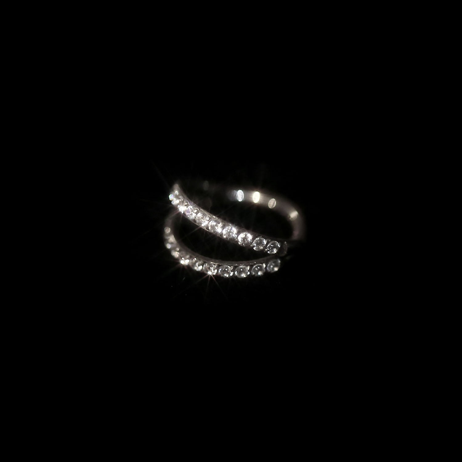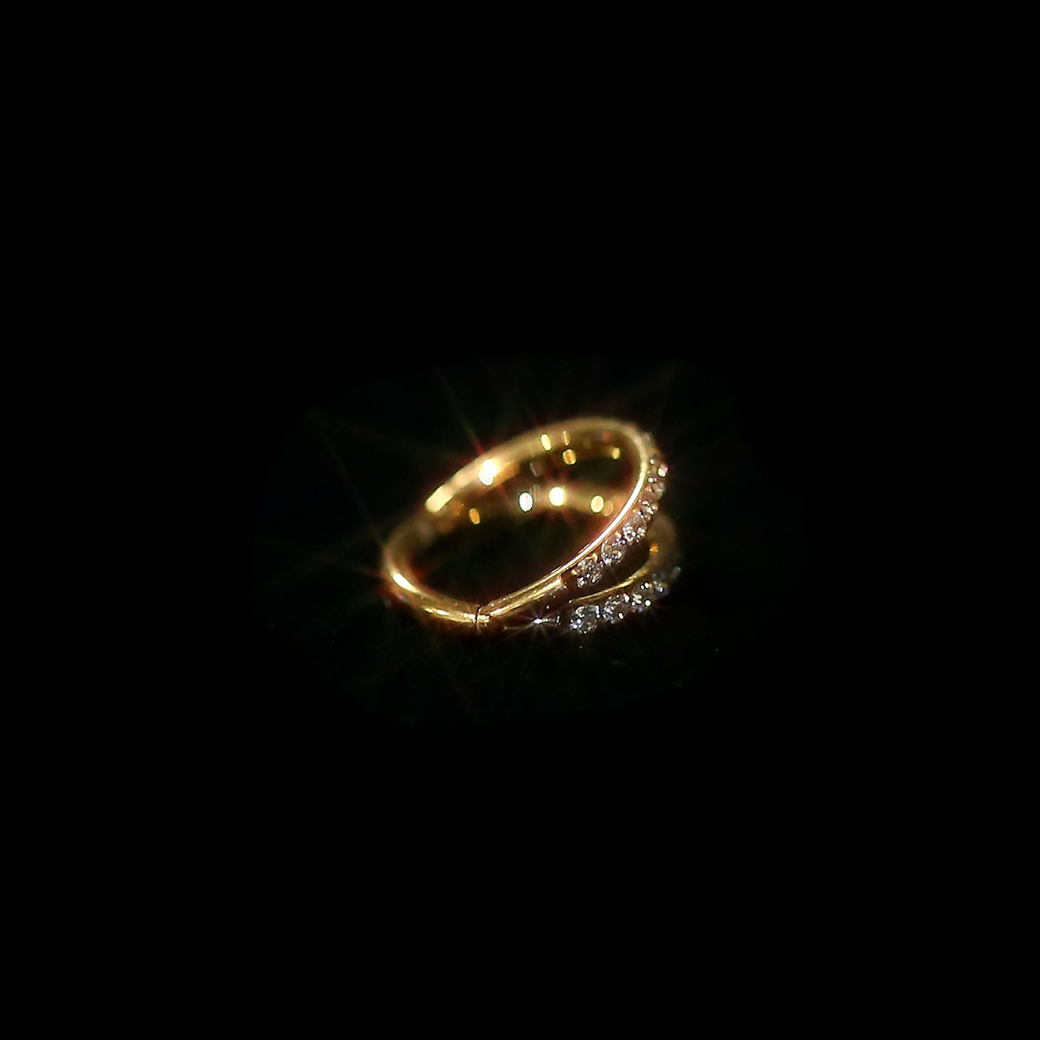 Anneau de nez à double rangée en titane de qualité implantaire, serti de minuscules cristaux de zircone cubique. L'anneau nasal est articulé et s'enclenche pour s'ouvrir et se fermer. Peut être porté sur la narine, le septum, l'hélice et le tragus (oreilles). Hypoallergénique.